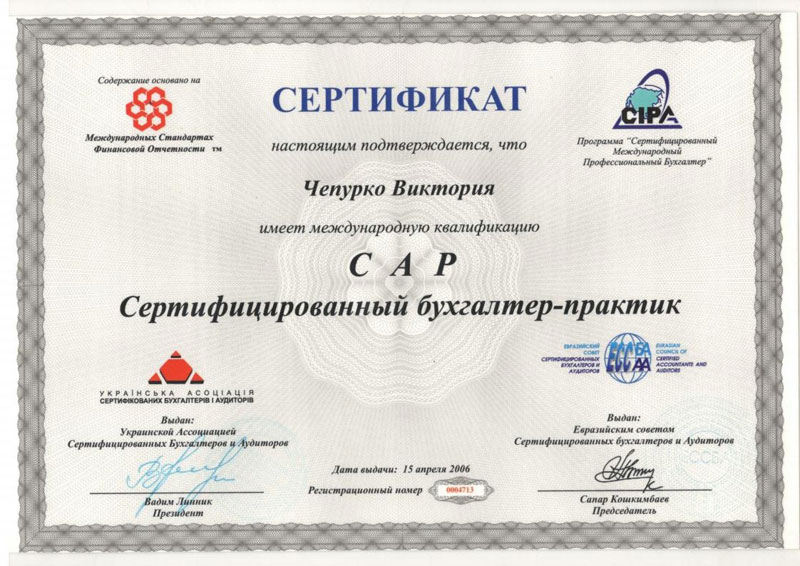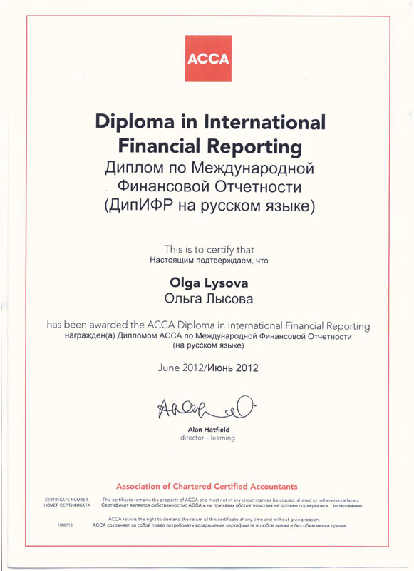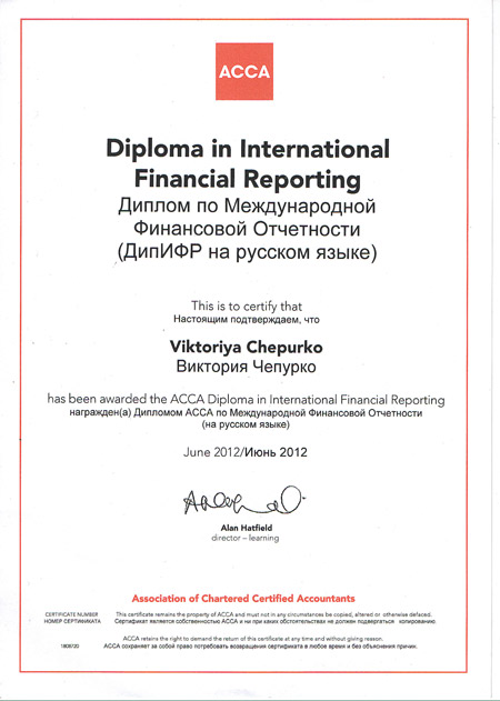 Сертификат ACCA-DipIFR;